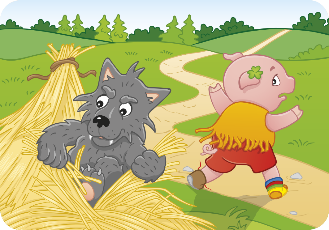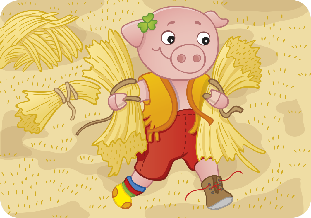 První prasátko moc daleko od maminčina domečku nedošlo. Kousek za stodolou si postavilo domeček ze slámy. Leželo jí tam na poli po žních všude dost.