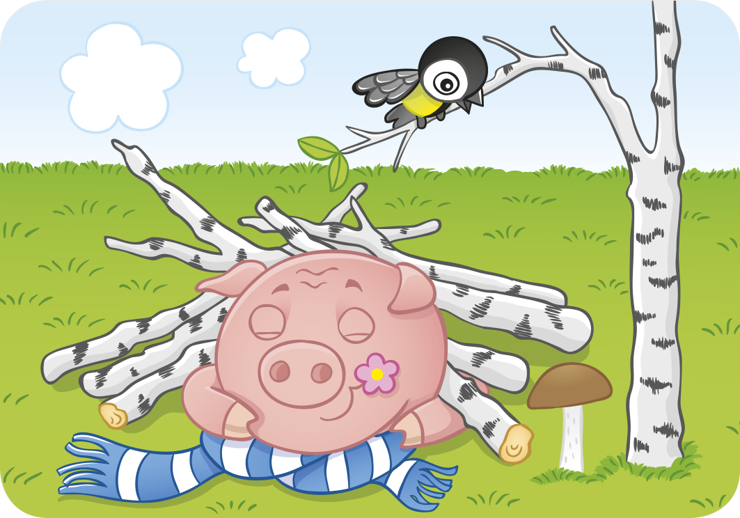 Druhé prasátko popošlo kousíček dál. K lesíku. Válela se tam po zemi spousta klacíků, které zlobiví kluci včera nalámali, když si tam hráli.