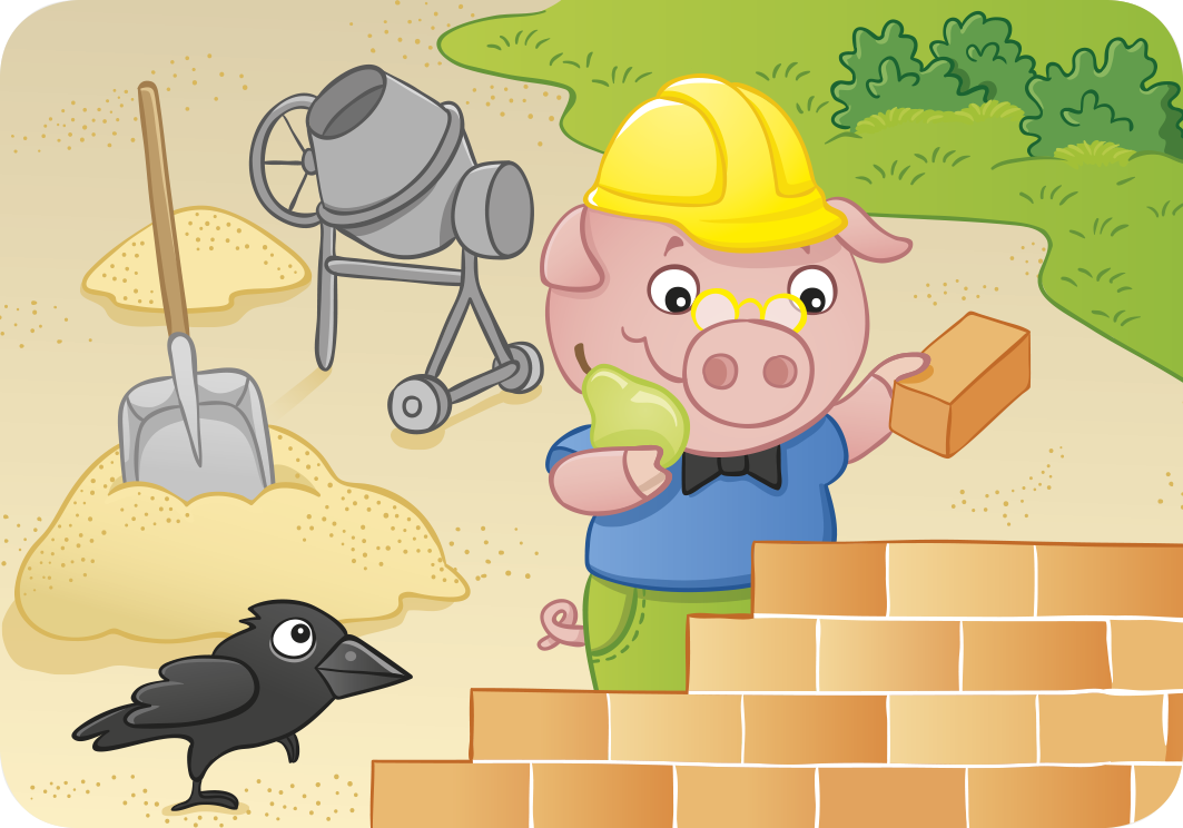 Prasátka slíbila, že se polepší a hned zjara začnou stavět pořádné domečky, aby v nich přečkala nevlídnou zimu a byla uvnitř hlavně v bezpečí.