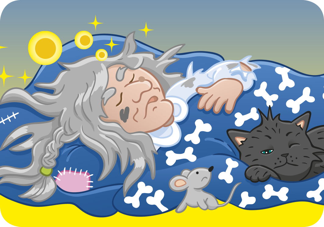 „To ty?“ ohnala se ježibaba po své kočce. Kočka se naježila a hbitě se protáhla mezi kotlíky s jedovatými lektvary do světnice.