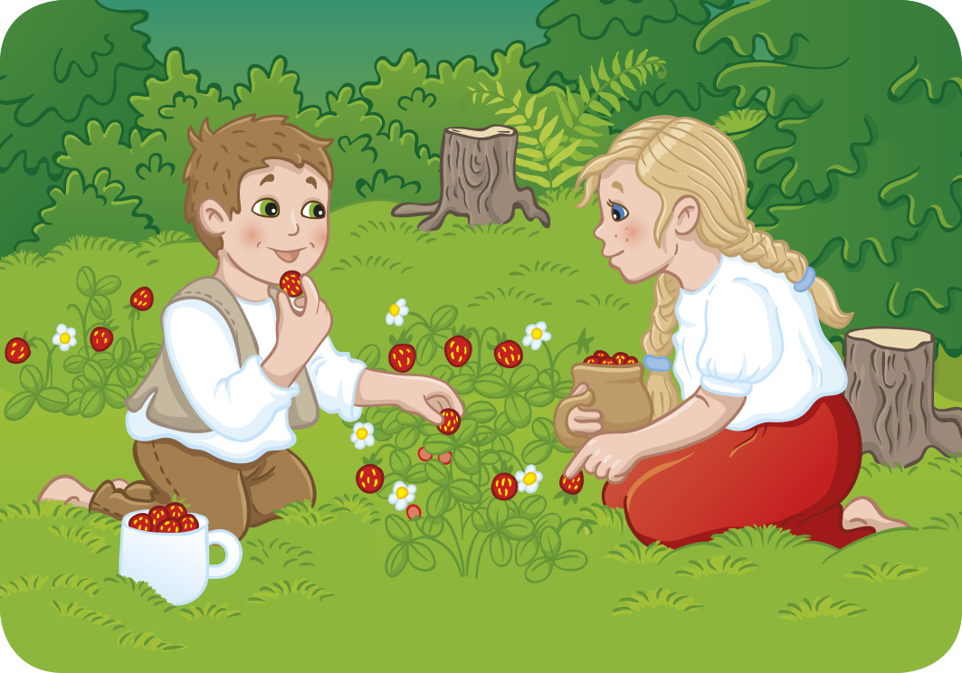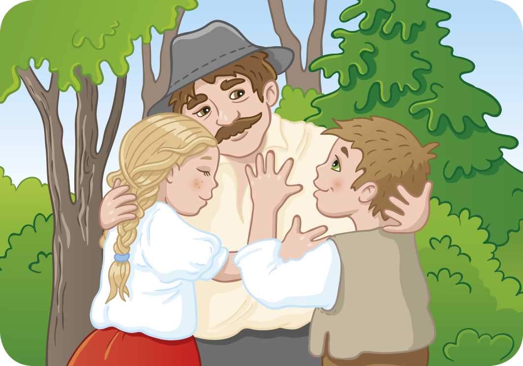 Každý den chodíval do lesa na dříví. V létě ho děti doprovázely. Ale jen k pasece. Tam čekaly na tatínka, až se vrátí z lesa. Na pasece sbíraly lesní jahody. Tatínek je pokaždé varoval: „Nechoďte za mnou do hlubokého lesa! Snadno se tam ztratíte.“