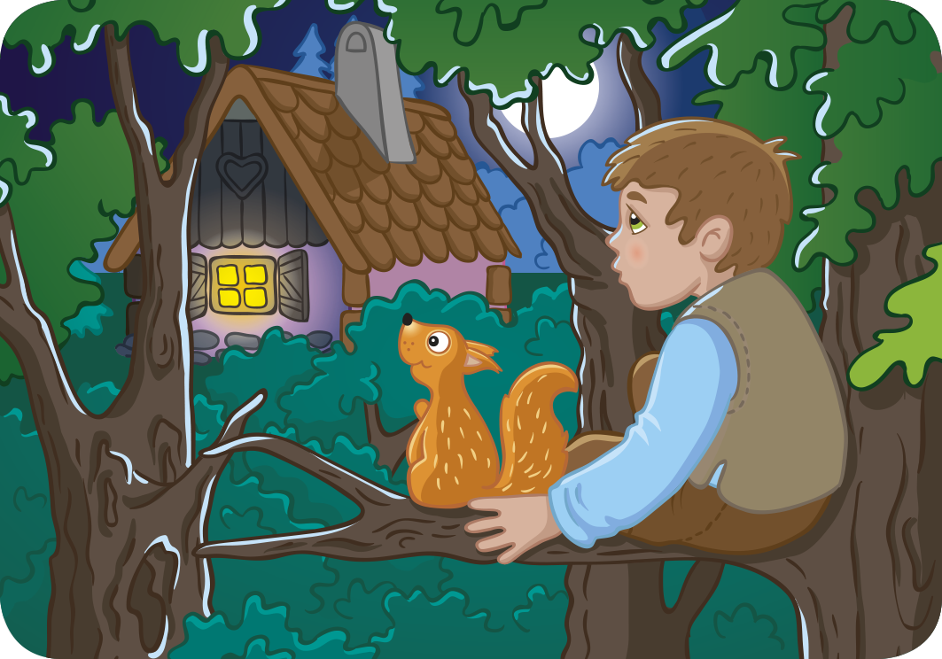 „Neplač, Mařenko. Vylezu támhle na ten vysoký strom a rozhlédnu se, kde je vidět světýlko.“ uklidňoval ji Jeníček.