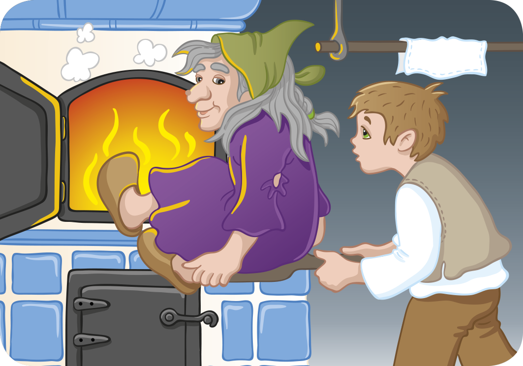 Jeníček nezaváhal ani vteřinu. Vší silou zatlačil na lopatu a šup s ježibabou do pece.
